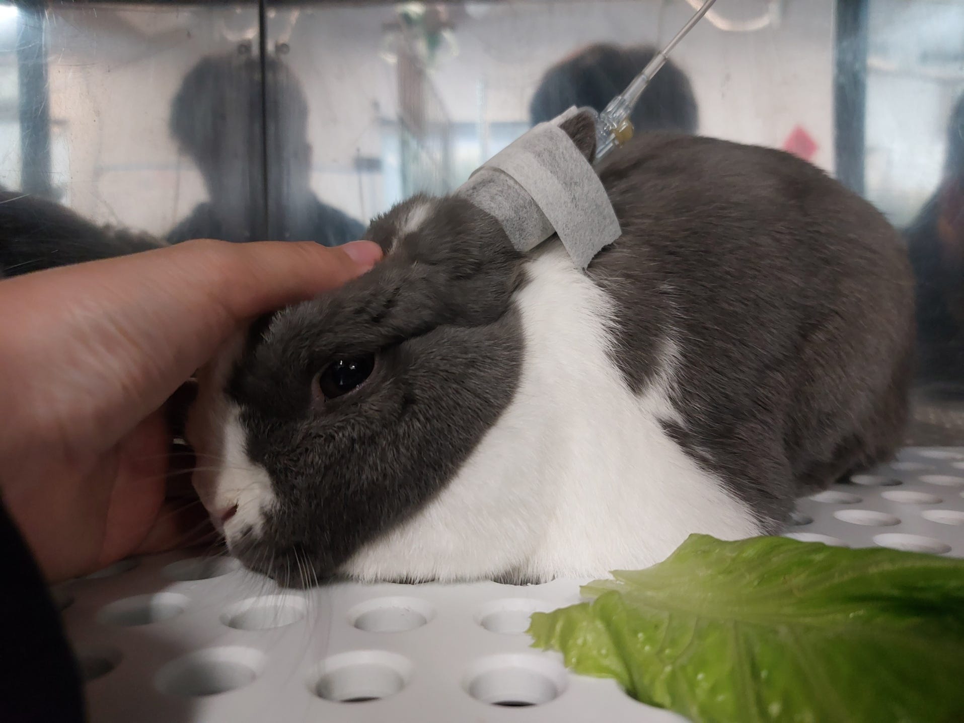 1天氣傷冷抑是傷燒的時,我頭殼就無咧動。開暖氣了後,精神攏來矣。兩工前,飼Pong ê早頓伊煞一喙嘛無食,khû咧遐。平常時伊看著飼料起毛婸甲會跳舞。觀察伊的草佮水,補過了後過12點鐘全無減少,夭壽我拄著飼兔仔上驚的狀況——兔仔袂食袂啉,足有可能是胃脹氣。兔仔的身體構造,若是胃無爽快,腸仔久無振動器官會敗壞,胃腸產生的有害物質若濟會thāu死家己。誠奇的是伊精神袂䆀閣不時拍兔仔拳,大力拍伊的枕頭pha-ta pha-ta叫。我敲電話共伊掛急診,欲共伊囥入去外出的籠仔,伊閣袂爽大力chàm塗跤,伊敢若毋是足嚴重的,但是伊毋願食物仔,害我蓋煩惱。頂一篇文寫伊足健康,隨就予醫生看。